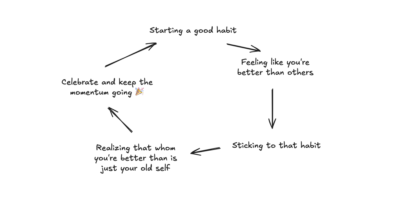 Starting to feel like you’re better than others, in my opinion, is a sign that you’ve begun to see yourself as separate from the person you once were. It becomes less likely for you to regress or fall back into old habits, because you don’t want to be like “others”, you’re better than that. The positive continuation of this realization is understanding that the only person you truly need to be better than is your past self.